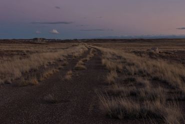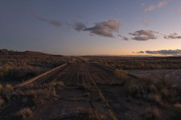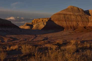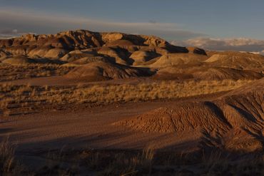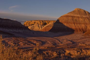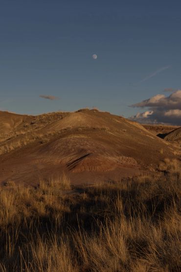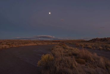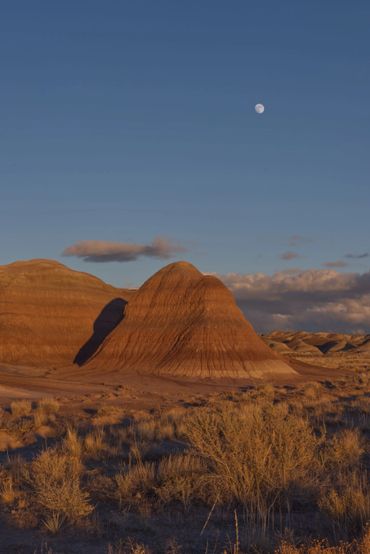 badlands with near full moon Petrified Forest National Park, Arizona December 5, 2022